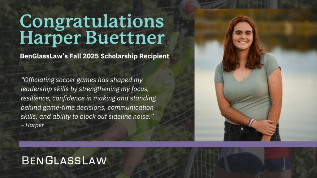 BenGlassLaw will send the winning student’s scholarship award directly to that student’s college, trade school, or university of choice Financial Aid Office.